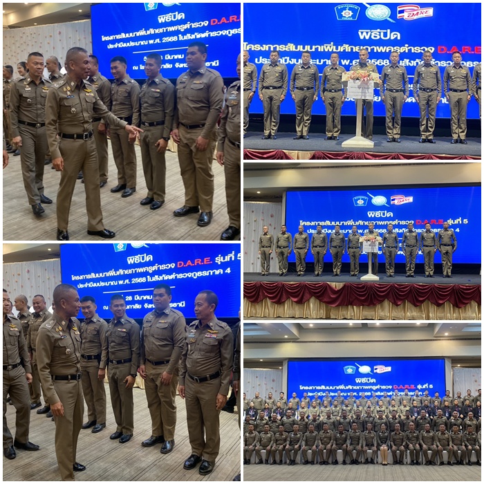 วันที่ (28 มี.ค. 2568) เวลาประมาณ 11.00 น. พล.ต.ต.ปราศรัย จิตตสนธิ รอง จตร. ช่วยราชการ ภ.4 พร้อม รอง ผบก.ภ.จว. ภายในสังกัดตำรวจภูธรภาค 4 เข้าร่วมพิธีปิดโครงการสัมนาเพิ่มศักยภาพครูตำรวจ D.A.R.E รุ่นที่ 5 ประจำปีงบประมาณ พ.ศ.2568 ในสังกัดตำรวจภูธรภาค 4 โดยมี พล.ต.ต.ปราศรัย จิตตสนธิ รอง จตร. ช่วยราชการ ภ.4 เป็นประธานในพิธี ณ โรงแรมนภาลัย จว.อุดรธานี